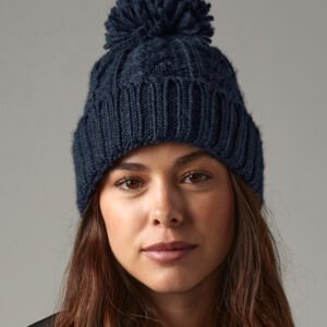 Cable Knit Melange Beanie de Beechfield — disponible en Disenis con personalización por serigrafía, bordado u otras técnicas para empresa. Ref. 096.69. Entrega en toda España. Precios y descuentos por volumen desde 25 unidades.