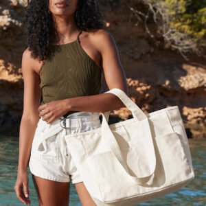 Double Handle Cargo Pocket Tote de Westford Mill — disponible en Disenis con personalización por serigrafía, bordado u otras técnicas para empresa. Ref. 950.28. Entrega en toda España. Precios y descuentos por volumen desde 25 unidades.