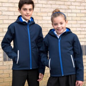 Kids TX Performance Hooded Softshell Jac de Result Core — disponible en Disenis con personalización por serigrafía, bordado u otras técnicas para empresa. Ref. 880.33. Entrega en toda España. Precios y descuentos por volumen desde 25 unidades.