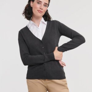 Ladies V-Neck Knitted Cardigan de Russell Collection — disponible en Disenis con personalización por serigrafía, bordado u otras técnicas para empresa. Ref. 774.00. Entrega en toda España. Precios y descuentos por volumen desde 25 unidades.
