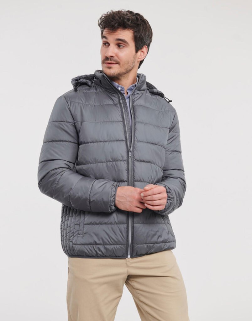 Men's Hooded Nano Jacket de Russell — disponible en Disenis con personalización por serigrafía, bordado u otras técnicas para empresa. Ref. 423.00. Entrega en toda España. Precios y descuentos por volumen desde 25 unidades.